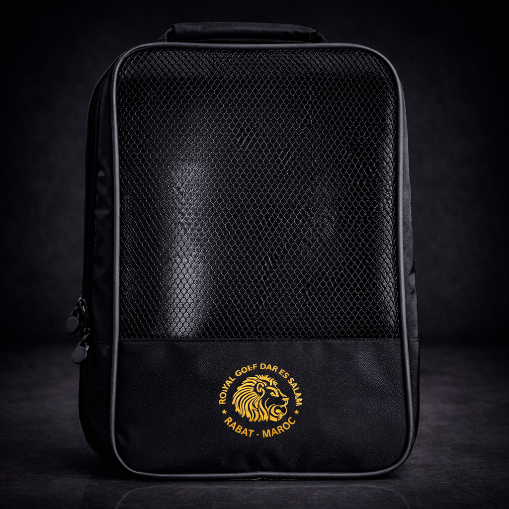 Ce sac a chaussures est conçue pour accompagner les golfeurs dans l’organisation de leur équipement. Elle permet de ranger facilement balles, tees, gants et accessoires indispensables. Sa conception robuste et sa fermeture zippée de qualité assurent une excellente protection de vos effets personnels. Son design sobre et premium, marqué du logo officiel du Royal Golf Dar Es Salam, en fait un accessoire à la fois fonctionnel et raffiné, idéal pour le parcours comme pour les déplacements.